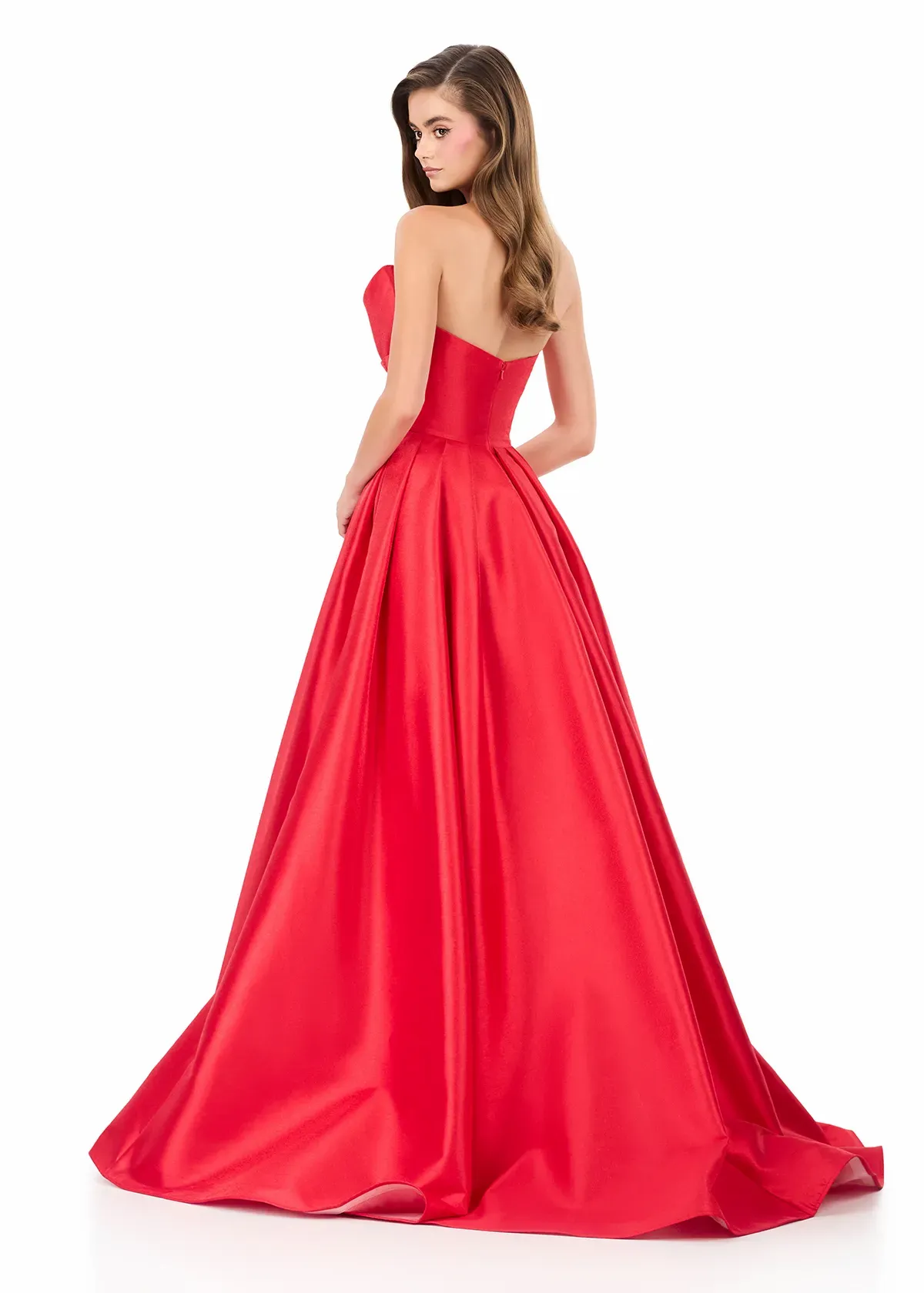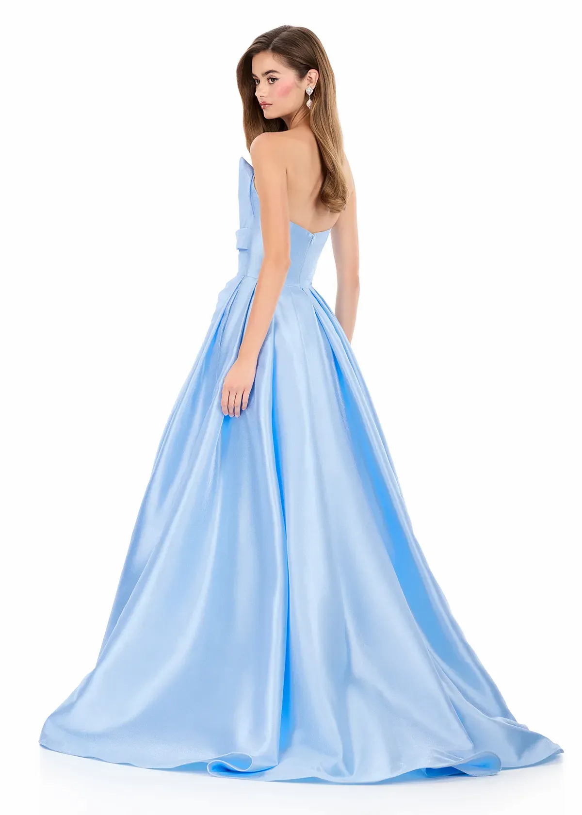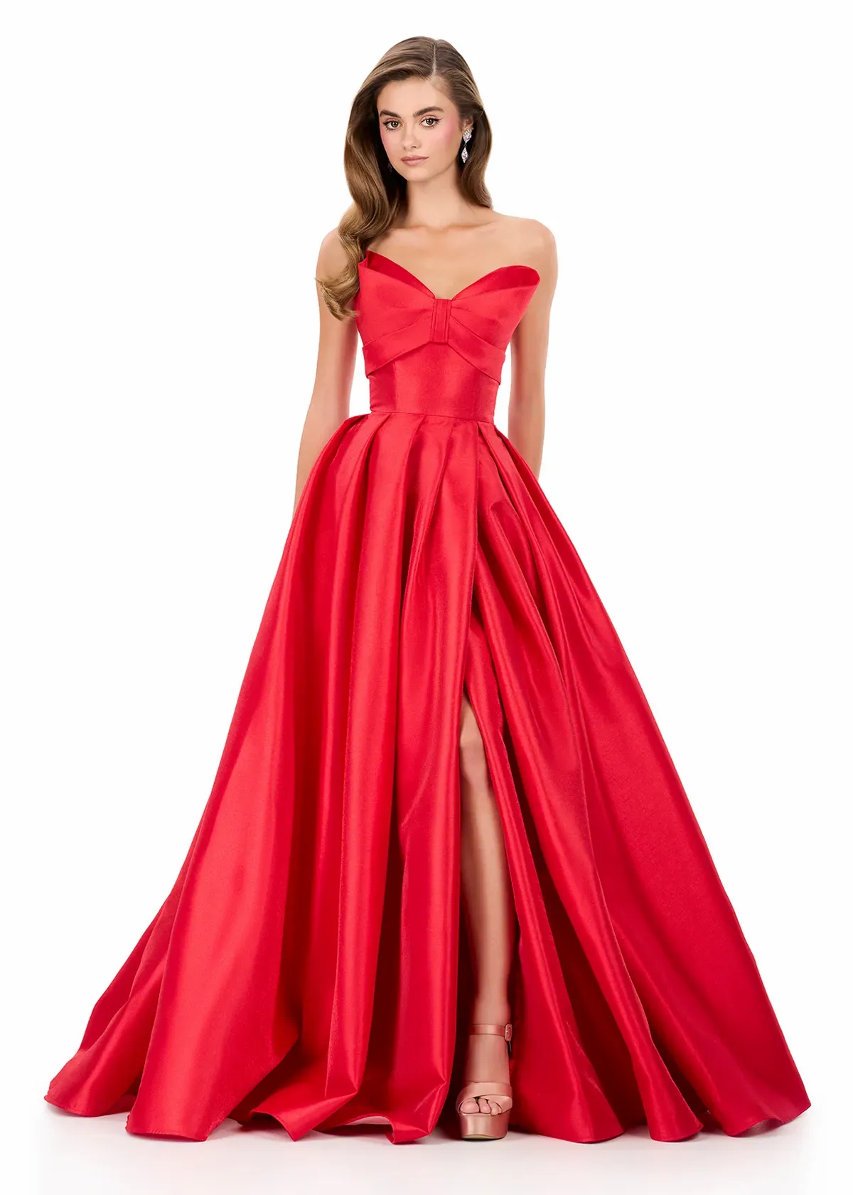 Be Chic and graceful in this beautifully tailored Mikado gown that blends simplicity with standout elegance. The ASHLEYlauren Style 12265 sweetheart bodice features subtle pleating that frames the neckline, while the full A-line skirt adds dramatic movement without overwhelming the silhouette. The clean, classic lines of this gown make it a versatile and polished choice for any formal event.